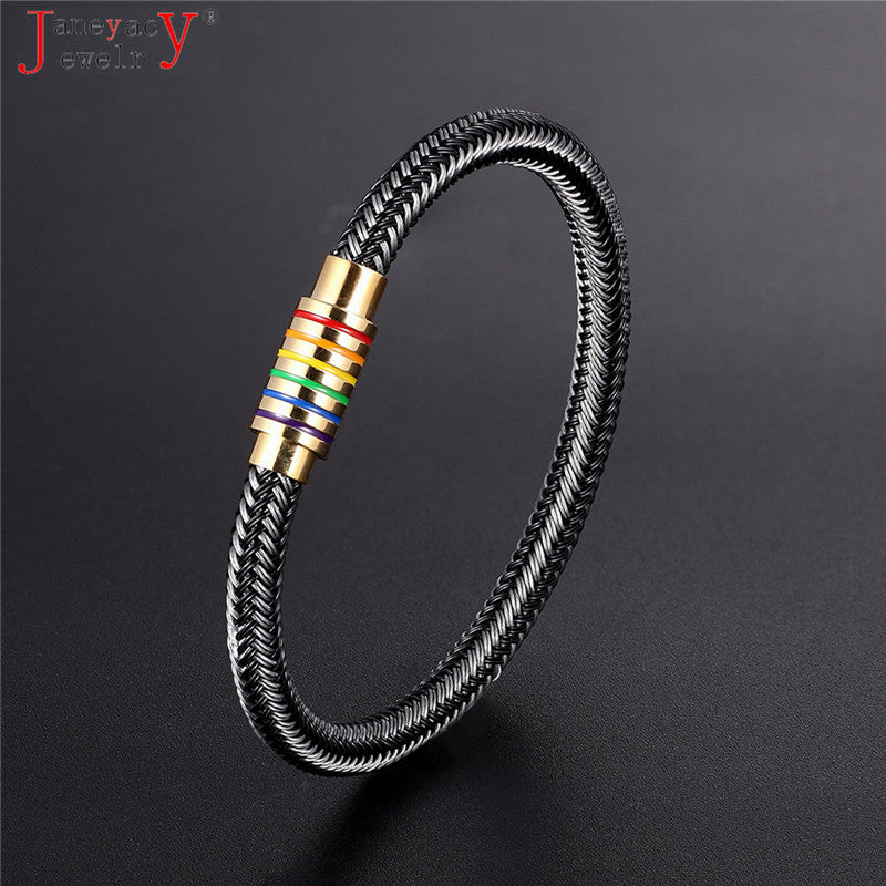 2019 NEW Black/White Braided Steel Wire Bracelet Women Gay Simple